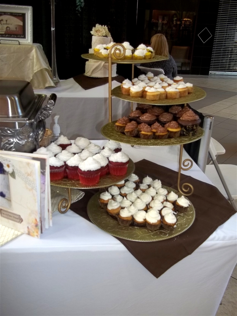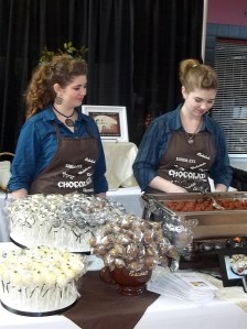 We work well as a team and it doesn’t take us long to set up. We had to be set up by 11:30 and didn’t get there until 10:30. Most everyone was already there and setting up. Of course, we prefer to keep it simple and we don’t have an elaborate display. There was an award for best decorated booth but we decided at the last expo to just go with a color them (chocolate, teal & gold) and napkins, food display pieces, a simple bouquet, our attire and even cake pops decorated in our theme colors pulled the whole booth together, I think.