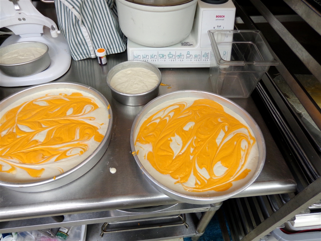 The bottom layer was our yummy Sour Cream White. I decided it needed marbled with “Consuming Fire” flames. The other layers were Chocolatetown Special and I just had to use Orange in honor of all the Gomer love.