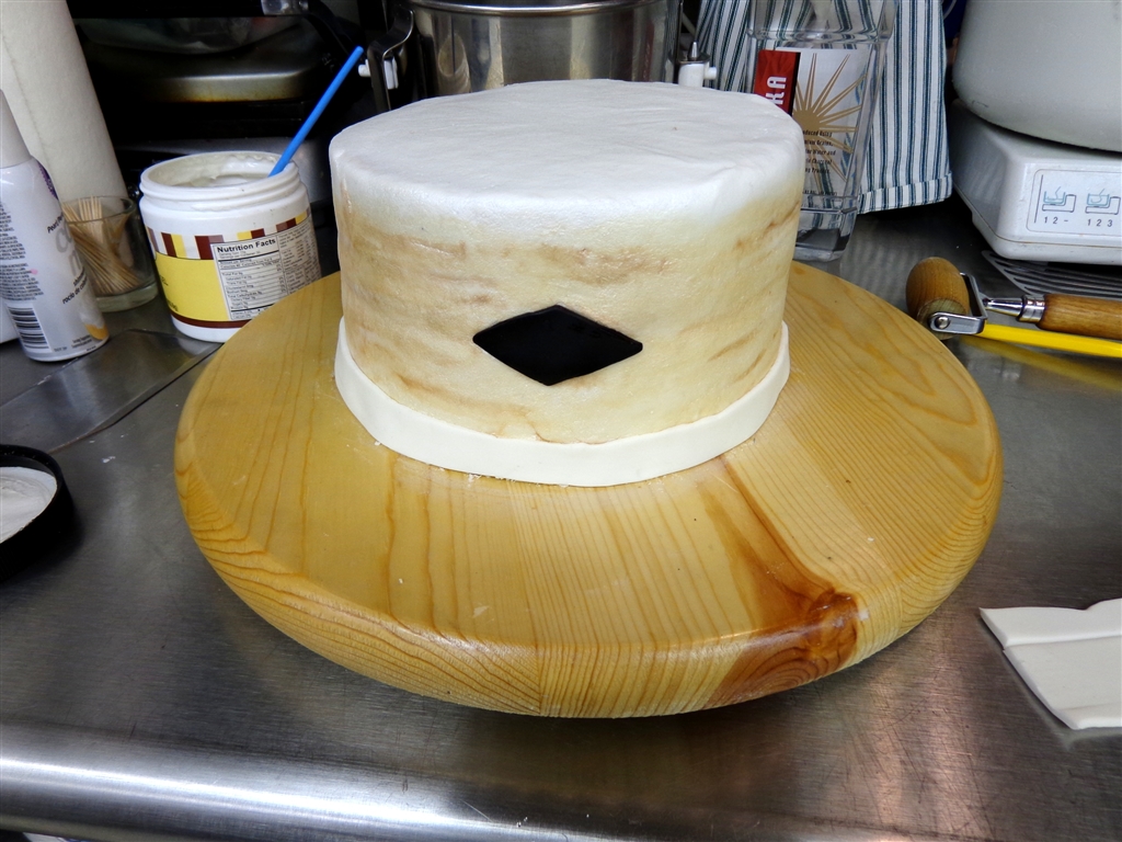 I made a couple of shades of vodka paint with brown icing color for the wood grain. Icing color tends to deepen or darken as it dries so I kept working with the colors trying to get them to match David’s drums expecting the paint to act like icing. It doesn’t work the same, I found. I made a vodka paint with luster dust and used that Opalescent spray for the hardware. I tried the sliver metallic spray and was not happy with the results. I’ve used the gold before and that looks great but the silver looked blue. Luster dust for silver. Write that down.